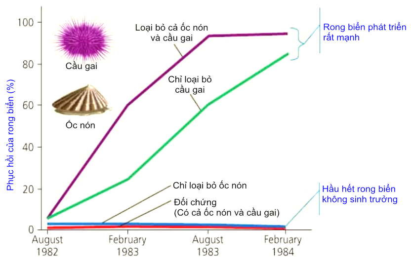 Nguồn:W.J. Fletcher, interactions among subtidal Australian sea urchins, gastropods, and algae: effect of experimental removals, Ecological Monographs 57:89-109 (1989).