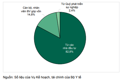 Nguồn vốn huy động cho các đề án xã hội hóa y tế từ các nhà đầu tư nhiều hơn từ quỹ phát triển sự nghiệp bao nhiêu phần trăm?