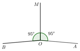Cho hai góc kề \(\angle AOM\) và \(\angle BOM\), mỗi góc có số đo là \({95^0}\). Hỏi tia \(OM\)có phải
