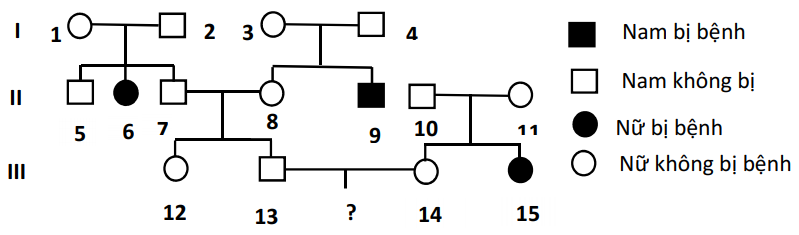 (2) Cá thể III.15 kết hôn với một người đàn ông không bị bệnh đến từ một quần thể có tần số người bị bệnh P là 4%. Xác suất sinh con đầu lòng bị bệnh P của cặp vợ chồng này là 1/6
