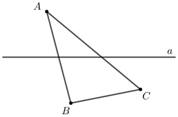 a) Cho ba điểm \(A,\,\,B,\,\,C\) không nằm trên đường thẳng \(a\), trong đó đường thẳng \(a\) cắt các đoạn thẳng \(AB\) và \(AC\). Đường thẳng \(a\) có cắt đoạn thẳng \(B\,C\) không? Vì sao?