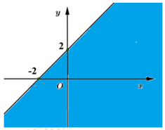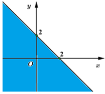 Miền nghiệm của bất phương trình \(x + y > 2\) là phần không tô đậm trong hình vẽ