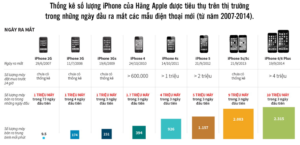 Theo thống kê ở bảng trên thì số lượng iPhone 6/6 Plus bán ra trung bình mỗi phút là bao nhiêu máy?