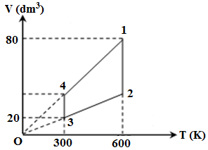 Một mol khí lý tưởng thực hiện một chu trình 1 - 2 - 3 - 4 (hình vẽ). Tính