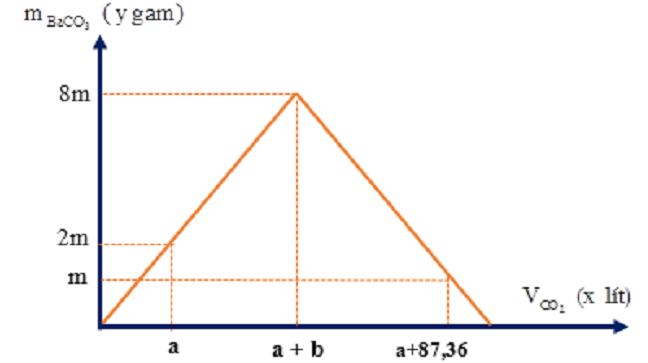 - Xét tại giá trị VCO2 = a + b (lít) (thời điểm kết tủa cực đại)