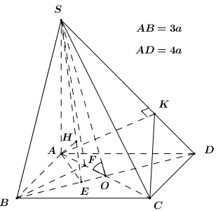 Cho hình chóp \(S.ABCD\) có đáy \(ABCD\) là hình chữ nhật có \(AB = 3a,\)\(AD = 4a,\) \(AC \cap BD = O\).