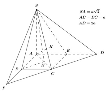Cho hình chóp \(S.ABCD\) có đáy \(ABCD\) là hình thang vuông tại \(A,\,\,B\), có \(AB = BC = a\), \(AD =