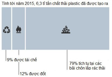 Theo số liệu đã cho cứ 6,3 tỉ tấn chất thải plastic được tạo ra thì có 79% tích tụ tại các bãi chôn lấp rác thải.