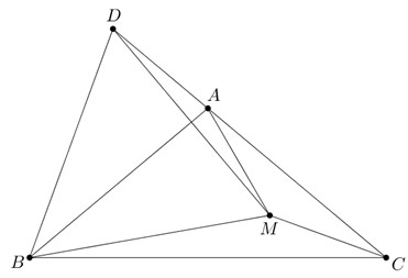 Cho tam giác \(ABC\) cân tại \(A,\,\) \(\angle BAC = {100^0}.\) Điểm \(M\) nằm trong tam giác sao cho