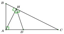 c) Tia phân giác của \(\angle AHC\) cắt \(AC\) tại \(D.\) Chứng minh \(\frac{{HB}}{{HC}} = \frac{{A{D^2}}}{{D{C^2}}}.\)