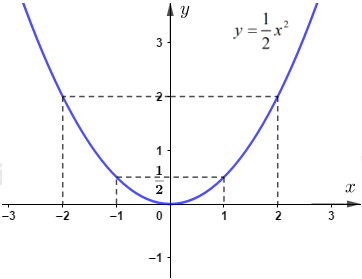 Cho hàm số: \(y = \frac{1}{2}{x^2}\)