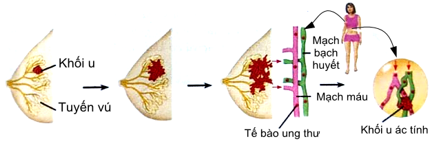 2. Trong tế bào của cơ thể người bình thường còn có các gen ức chế khối u làm cho các khối u không thể hình thành được. Tuy nhiên, nếu bị đột biến làm cho gen mất khả năng kiểm soát khối u thì các tế bào ung thư xuất hiện tạo nên khối u. Loại đột biến này thường là đột biến lặn. Người ta đã biết 1 số gen gây bệnh ung thư vú ở người thuộc loại này.