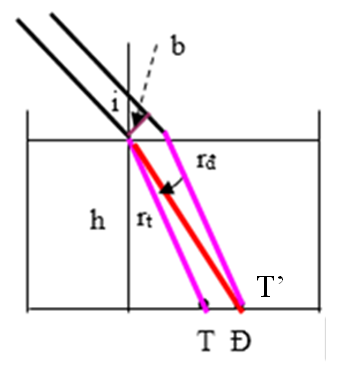 Bề rộng quang phổ: \(DT=h.\left( {{\operatorname{tanr}}_{d}}-\tan {{r}_{t}} \right)\)