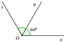 Trên cùng một nửa mặt phẳng bờ chứa\(Ox\), vẽ hai tia \(Oy\) và \(Oz\) sao cho \(\widehat {xOy} = 60^\circ \) và \(\widehat {xOz} = 120^\circ \), khi đó