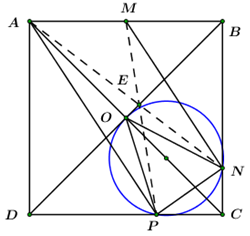 Cho hình vuông \(ABCD\) với tâm \(O.\) Gọi \(M\) là trung điểm của cạnh \(AB.\) Các điểm \(N,\,\,P\) theo thứ tự thuộc các cạnh \(BC,\,\,CD\) sao cho \(MN//AP.\) Chứng minh rằng: