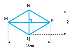 Cho hình thoi MNPQ. Biết \(MP = 28\,cm\), độ dài đường chéo \(NQ\) bằng \(\frac{3}{4}\) độ dài