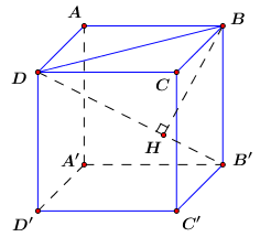 Cho hình lập phương \(ABCD.A'B'C'D'\) cạnh \(a\). Tính khoảng cách từ \(B\) tới đường thẳng \(DB'\).