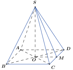 Cho hình chóp tứ giác đều \(S.ABCD\) có cạnh đáy bằng \(a\) và cạnh bên bằng \(\dfrac{{a\sqrt 3