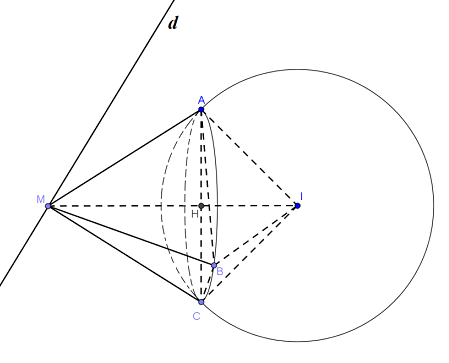 Trong không gian \(Oxyz\), cho mặt cầu \(\left( S \right):{x^2} + {y^2} + {z^2} - 2x - 4y + 6z - 13 = 0\) và đường thẳng \(d:\dfrac{{x + 1}}{1} = \dfrac{{y + 2}}{1} = \dfrac{{z - 1}}{1}\). Lấy điểm \(M\left( {a;b;c} \right)\) với \(a < 0\) thuộc đường thẳng \(d\) sao cho từ M kẻ được 3 tiếp tuyến \(MA,MB,MC\) đến \(\left( S \right)\) (\(A,B,C\) là các tiếp điểm) thoả mãn \(\angle AMB = {60^0},\) \(\angle BMC = {90^0},\) \(\angle AMC = {120^0}\). Tổng \(a + b + c\) bằng