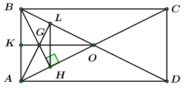 c) Gọi \(O\) là giao điểm của \(AC\) và \(BD,\,\,K\) là trung điểm của \(AB,\,\,BH\) cắt \(OK\) tại \(G,\) đường thẳng \(AG\) cắt \(OB\) tại \(L.\) Chứng minh \(LH//AB.\)