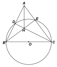 Cho \(\Delta ABC\) nhọn, vẽ đường tròn tâm \(O\) đường kính là cạnh \(BC\) cắt các cạnh \(AB\) và \(AC\) tại \(D\) và \(E\). Gọi \(H\) là giao điểm của \(BE\) và \(CD.\) Chứng minh tứ giác \(ADHE\) nội tiếp.