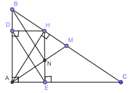 +) Gọi \(AM \cap HE = N\). Chứng minh \(BN \bot AM;\,\,BN//DE \Rightarrow DE \bot AM\)