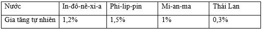 Theo bảng số liệu, nhận xét nào sau đây đúng khi so sánh tỉ lệ tăng tự nhiên năm 2018 của một số quốc gia?
