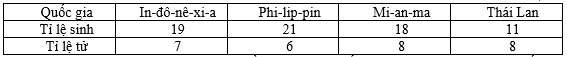 Cho bảng số liệu: TỈ LỆ SINH VÀ TỈ LỆ TỬ CỦA MỘT SỐ QUỐC GIA NĂM 2018 (Đơn vị: