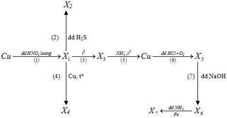 Cho sơ đồ sau: Biết các chất từ X1 đến X7 đều là các hợp chất của đồng. Trong sơ đồ