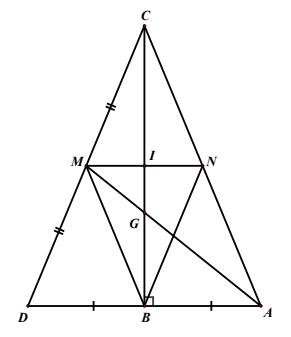 d) Chứng minh \(DN\) là đường trung tuyến của \(\Delta ACD\), từ đó suy ra \(D,G,N\) thẳng hàng.