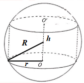 - Gọi \(h\) là chiều cao của khối trụ. Tính bán kính khối trụ theo \(h,\,\,R\).