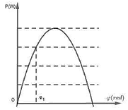Đặt điện áp xoay chiều có giá trị hiệu dụng và tần số không đổi vào hai đầu đoạn mạch AB mắc nối tiếp gồm biến trở R và cuộn cuộn cảm thuần L. Gọi φ là độ lệch pha của điện áp hai đầu đoạn mạch và cường độ dòng điện trong đoạn mạch. Hình vẽ là đồ thị của công suất mà mạch tiêu thụ theo giá trị của φ. Giá trị của φ1 gần giá trị nào nhất sau đây?