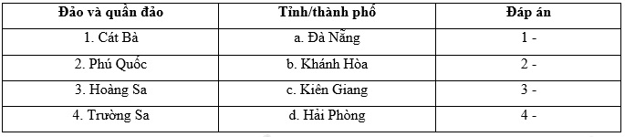Nối tên và vị trí các đảo và quần đảo lớn của nước ta cho phù hợp