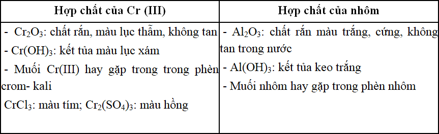 So sánh tính chất lí, hoá học giữa các hợp chất của crom(III) với các hợp chất của nhôm.