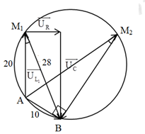 Biết U = 10 V; f = 50 Hz. Khi L = L1 thì UAM = 20 V và UMB = 28 V. Khi L = L2 thì UAM đạt giá trị cực đại. Giá trị cực đại đó xấp xỉ bằng