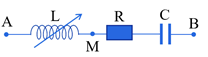 Cho mạch điện như hình vẽ dưới đây. Biết U = 10 V; f = 50 Hz. Khi L = L1 thì UAM = 20 V và UMB =