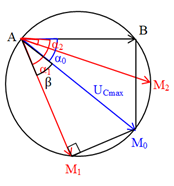 Biết U = 220 V và f không đổi. Khi C = C1 thì điện áp uAM trễ pha 600 so với u. Khi C = C2 thì điện áp uAM trễ pha 300 so với u. Trong hai trường hợp trên, điện áp hiệu dụng giữa hai bản tụ có cùng giá trị. Giá trị đó xấp xỉ bằng