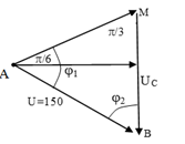 Mạch điện AB gồm đoạn AM nối tiếp MB. Đặt vào hai đầu mạch \(u = 150\sqrt 2 \cos 100\pi t\,\,\left( V \right)\). Điện áp ở hai đầu đoạn AM sớm pha hơn cường độ dòng điện một góc \({30^0}\). Đoạn MB chỉ có một tụ điện có điện dung C thay đổi được. Điều chỉnh C để tổng điện áp hiệu dụng \({\left( {{U_{AM}} + {U_{MB}}} \right)_{\max }}\). Khi đó điện áp hiệu dụng ở hai đầu tụ điện là