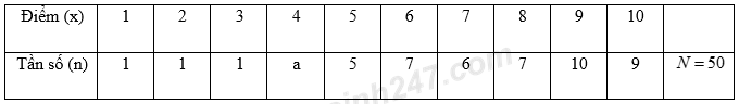 Tổng các tần số là 50. Khi đó ta có thể dễ dàng tìm được số \(a\).