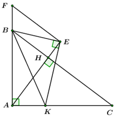 c) Từ \(E\) kẻ đường thẳng vuông góc với \(EB\) cắt đoạn \(AC\) tại \(K\) (\(K\) nằm giữa \(A\) và \(C\)). Chứng minh \(AF.BE = BK.EF\) (không sử dụng giả thiết câu b).