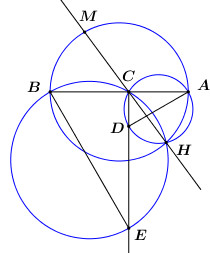 Cho 3 điểm A, B, C thẳng hàng với C nằm giữa A và B. Vẽ tia Cx vuông góc với AB, trên tia Cx lấy 2 điểm D và E sao cho \(\dfrac{{CE}}{{CB}} = \dfrac{{CA}}{{CD}} = \sqrt 3 \). Đường tròn ngoại tiếp tam giác ADC cắt đường tròn ngoại tiếp BEC tại H khác C. Chứng minh rằng đường thẳng HC luôn đi qua điểm cố định khi C di chuyển trên AB.