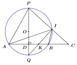 - Gọi IQ cắt AB tại K và PQ cắt AB tại D.