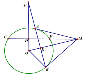 Cho đường tròn (O) bán kính R và một đường thẳng (d) cắt (O) tại 2 điểm C và D, Lấy M di