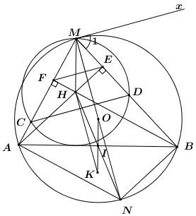 a) Chứng minh góc \(\angle xME = \angle MEF\), từ đó suy ra Mx // EF với Mx là tiếp tuyến của đường tròn (O) tại M.