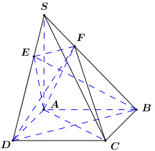Cho hình chóp S.ABCD có đáy ABCD là hình vuông, SA vuông góc với đáy. Gọi BE, DF là các đường cao của \(\Delta \)SBD. Chứng minh: