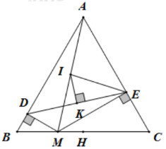 Cho tam giác đều ABC và điểm M nằm bất kì trên cạch BC. Gọi D, E lần lượt là hình chiếu vuông góc của M trên AB và AC. Xác định vị trí M để tam giác MDE có chu vi nhỏ nhất?
