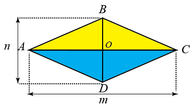 (Trong đó: S là diện tích hình thoi, \(m,\,n\) là độ dài của hai đường chéo)