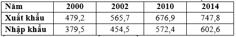 Cho bảng số liệu: GIÁ TRỊ XUẤT KHẨU, NHẬP CỦA NHẬT BẢN GIAI ĐOẠN 2000 – 2014.