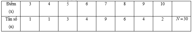 Điểm kiểm tra học kì 1 môn Toán của tất cả học sinh trong lớp 7A được ghi lại như sau: