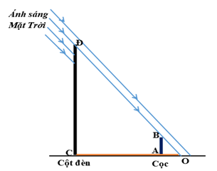 Vào một ngày trời nắng, cùng một lúc người ta quan sát thấy một cái cọc cao 1m để thẳng